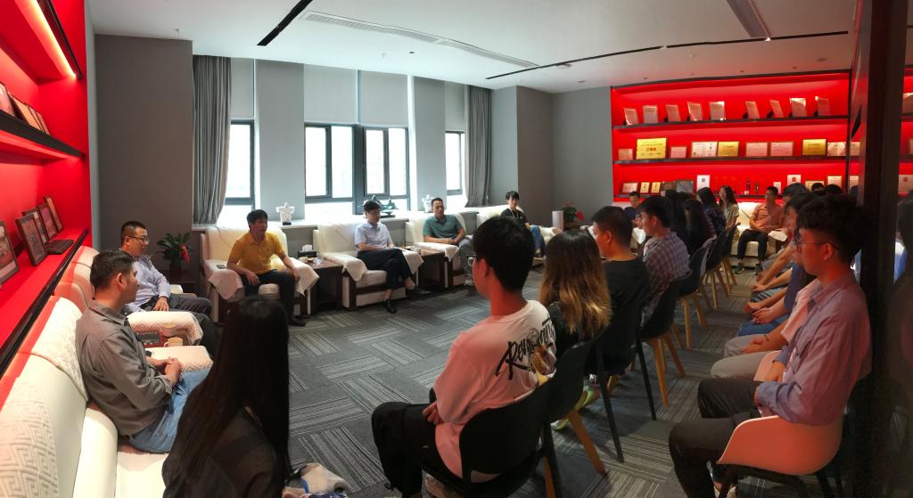 缪国科、欧阳智卜对学生来公司实习表示热烈欢迎,并勉励同学们要敢于面对竞争锤炼自己,实现自身的价值,并为公司创造价值;紧接着举行了拜师仪式,20个学生依次给4位企业师傅敬茶鞠躬,行拜师礼。