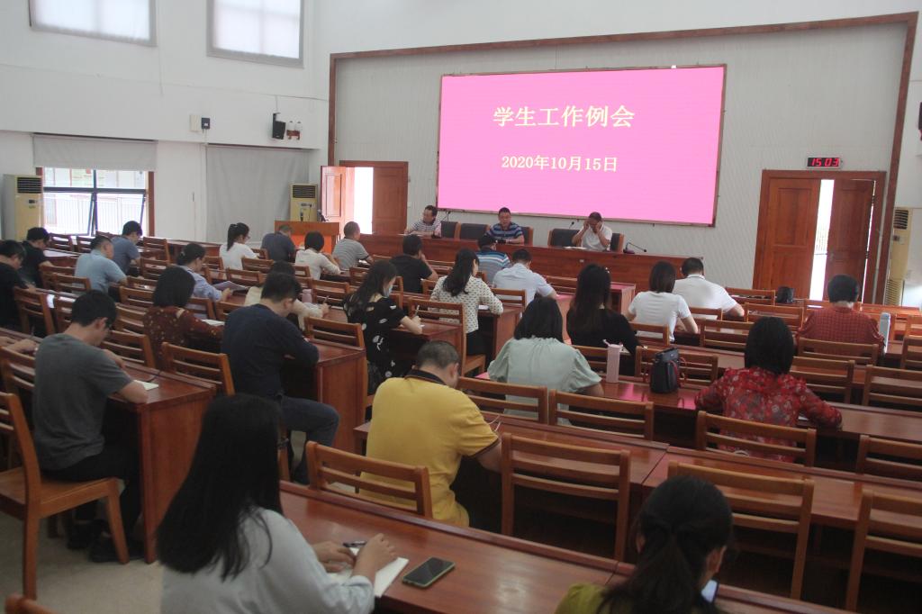 10月15日,我校在行政楼C108召开学生工作例会。各学院副书记、团总支书记、全体辅导员及学生工作处相关人员参加了此次会议,会议由学生工作处处长戴佰阳主持。