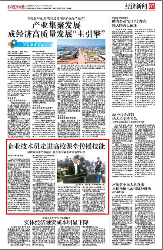 11月9日《河源日报》以《企业技术员走进高校课堂传授技能》为题,对我校深化产教融合、让学生与就业市场紧密对接进行了报道。