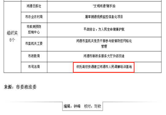 喜讯!我校人民调解员培训基地项目获2020年度河源市“平安杯”社会治理创新大赛“组织奖”