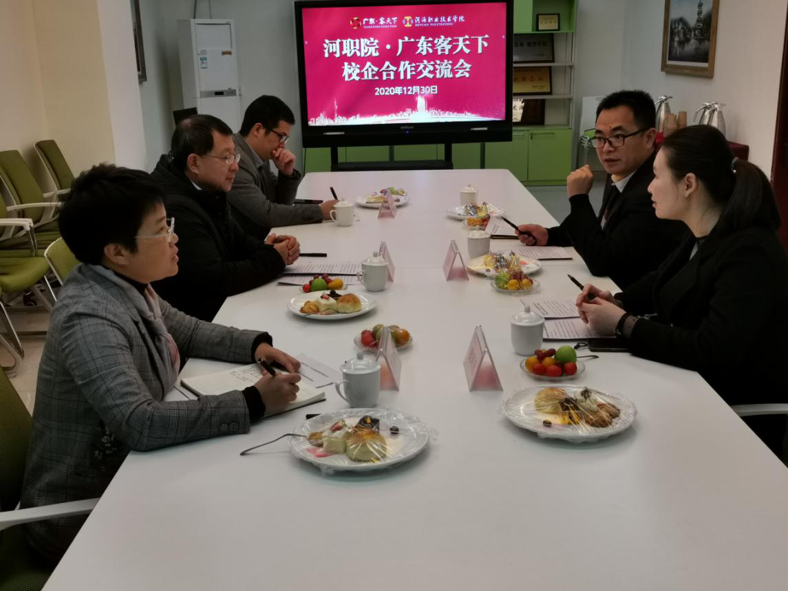 12月30日,工商学院俞彤院长率相关人员前往河源客天下召开校企合作交流会、国家现代学徒制学生座谈会,客天下人力资源张军总监、梁晴苑经理及各部门经理和企业导师参加座谈会。