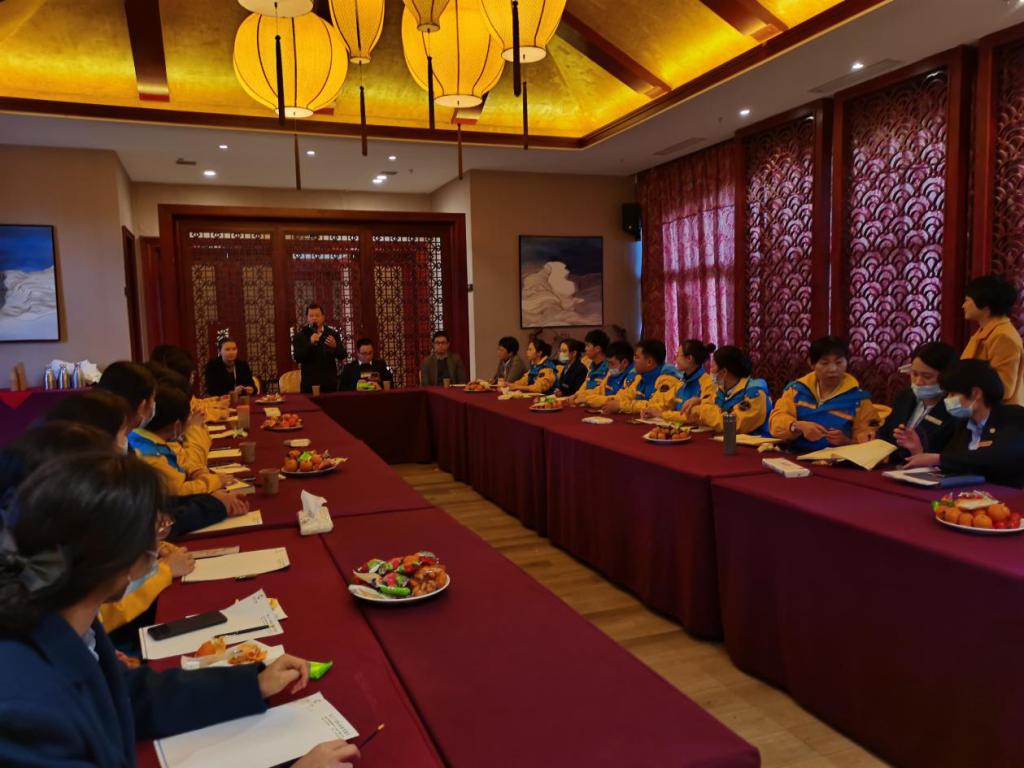 会后,指导老师2019级国家现代学徒制班的授课现场,了解学生在企业的学习情况。同学们自11月29日进企业学习以来,完成了《酒店服务礼仪》等12门课程的现场授课。同学们对于这种双场地、双导师的授课方式表示非常欢迎,认为理论与实操相结合、真实工作场景学习更能让他们学以致用。
