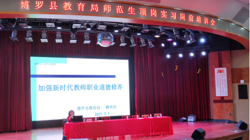 为提高新顶岗实习学生的专业知识及教育教学水平,使师范类实习学生能尽快地熟悉岗位工作,尽快成为一名合格的教师,3月1日上午,博罗县教育局在赢博线上官网(集团)官方网站艺术楼演播厅开展顶岗实习学生岗前教育培训。