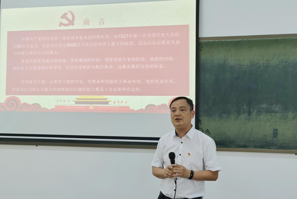 钟建坤院长从党史发展、新民主主义革命、社会主义革命和建设、改革开放和社会主义现代化建设等方面,引导同学们深入了解中国共产党建党历史的时间脉络与重要意义。他表示,党的建设经验、领导武装斗争经验、执政经验、搞社会主义建设经验以及经受挫折失败的教训等,教导我们要不忘初心、牢记使命,高举中国特色社会主义旗帜,为实现中华民族伟大复兴的中国梦不懈奋斗。