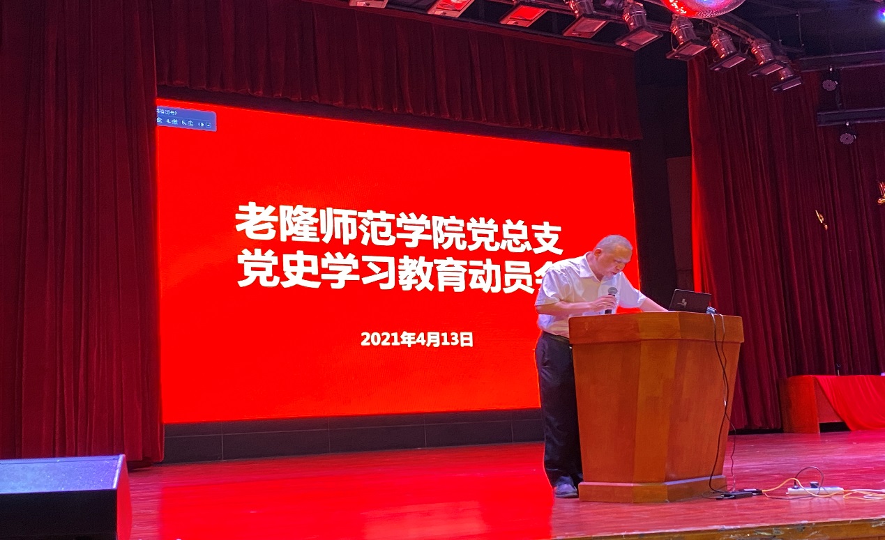 4月13日,老隆师范学院在艺术楼演播厅召开全体党员党史学习教育动员会。学院党总支副书记谢战锋同志作党史学习教育动员讲话,传达了学校党委关于开展党史学习教育的实施方案,对开展党史学习教育的重大意义、目标要求、重点内容做了解读。