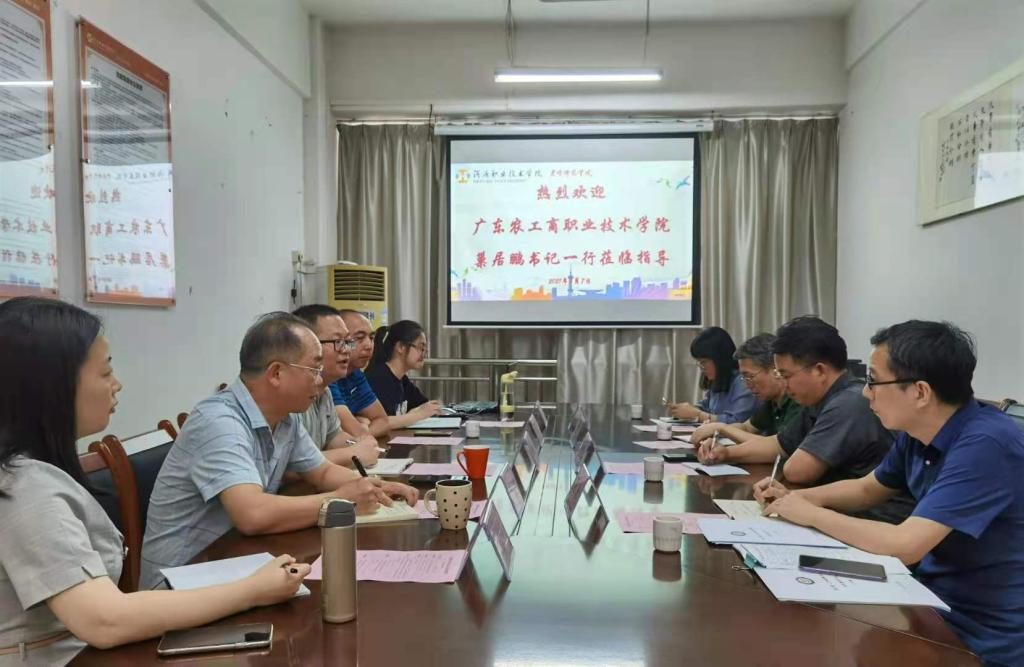 会上,李雄副院长向到访客人介绍了学院概况、专业建设情况、实训室建设、教学科研等工作开展情况;巢居鹏书记介绍了广东农工商职业技术学院外语学院概况、历史沿革、学科建设发展情况等。