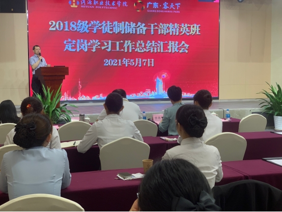 2021年5月7日,工商学院俞彤院长、校企办曾惠华主任、酒店管理专业主任王凌辉老师和专业老师一行前往河源客天下参加“2018级学徒制储备干部精英班定岗学习工作总结汇报会”。客天下管理中心副总监张军、景区总经理宋军、景区副总经理鲍玲玲、人力资源部经理及各部门经理参加了会议。