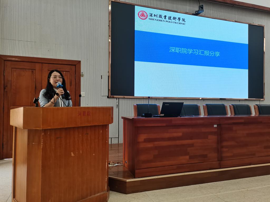 紧接着,学院副院长王方针对5月份在深圳职业技术学院跟岗学习3周的所见所闻所想,从深职院艺术设计学院的人员规模、课程建设、专业设置、人才培养、教育教学、学习感悟等方面对全体教师进行了详细的介绍和分享,对今后的专业建设和人才培养工作提出了建设性的意见。