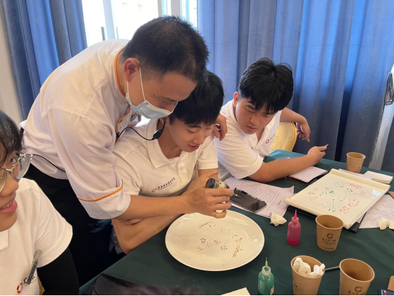 企业导师手把手教学生摆盘