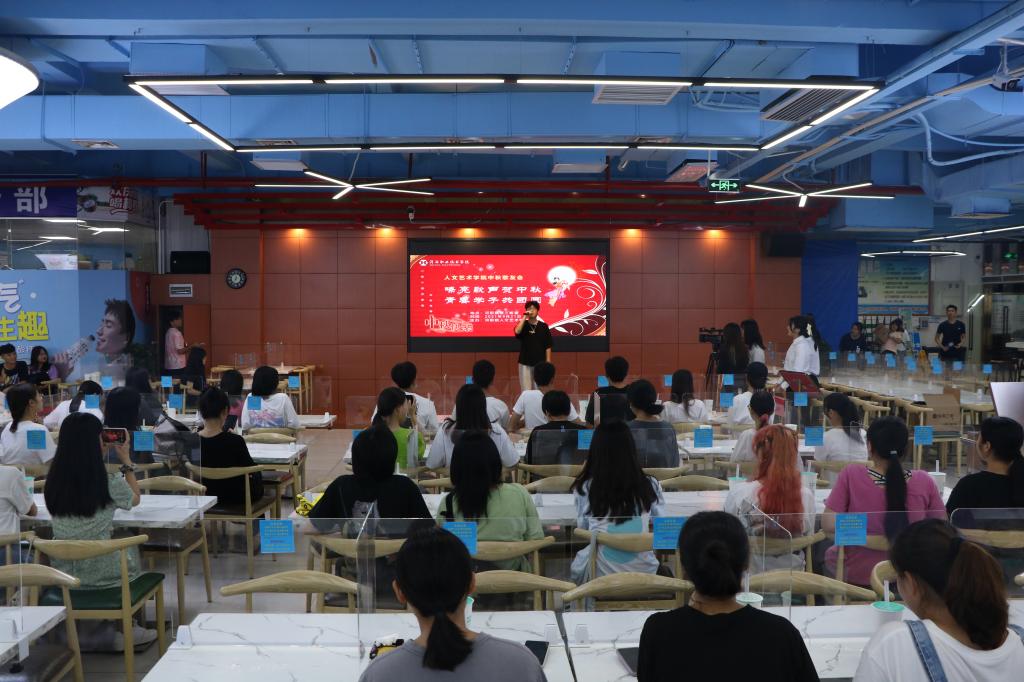 嘹亮歌声贺中秋,青春学子共团圆。9月21日,我校人文艺术学院团总支于第三饭堂举行中秋歌友会,活动由融媒体中心电视台黄晓纯、广播站刘佳洁主持。