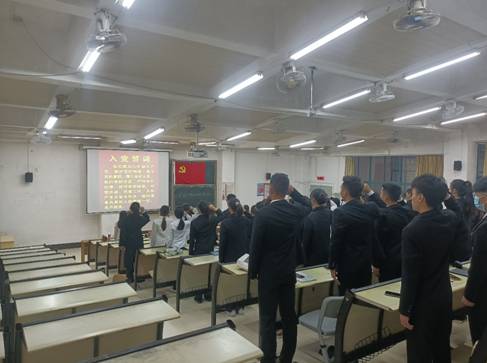 邵长剑老师围绕“习近平总书记在纪念辛亥革命110周年大会上的重要讲话”进行专题学习。本次会议接着讨论吴菲菲等52位新发展党员同志为预备党员的事宜。会上,吴菲菲同志认真汇报了自己作为入党积极分子以来的政治思想、学习和生活等具体情况,并表明坚定加入中国共产党的决心。随后,入党介绍人介绍新发展党员对象在考察期间的培养教育情况,对新发展对象能否转为预备党员展开充分讨论并进行表决。接着,全体党员共同参加了专题组织生活会,展开批评与自我批评教育。其中,骆小婷老师以“十九届六中全会精神”为主题,着重从党史发展脉络、十九届六中全会内容出发介绍党的相关知识,并希望青年党员要勇担时代责任,为实现中华民族伟大复兴的中国梦奉献自己的力量。紧接着,全体党员面对党旗宣誓,重温入党誓词。最后,全体师生党员一起学习观看了电影《黄大年》的片段。