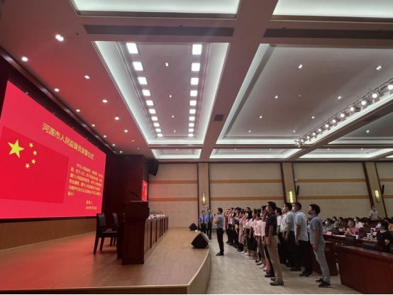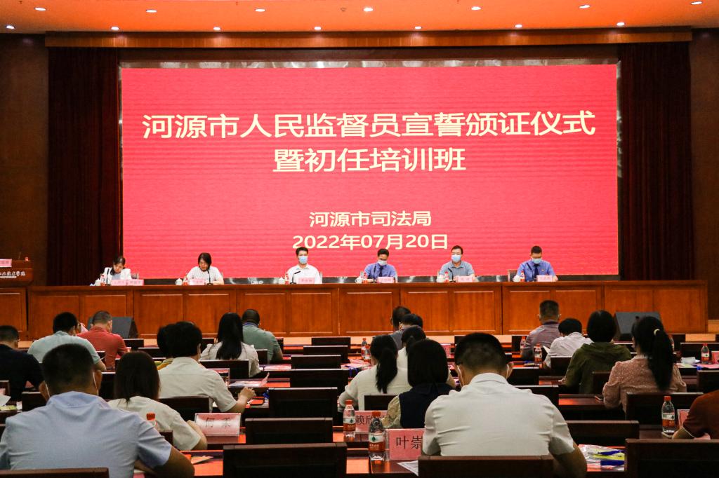 为加强我市人民监督员队伍建设,提升人民监督员依法履职能力和水平,更好地发挥人民监督员作用,7月20日,河源市司法局在我校举办2022年河源市人民监督员宣誓颁证仪式暨初任培训班。市司法局党组书记、局长李庆铎,市人民检察院党组成员、政治部主任吴宇峰,市司法局党组成员、政治处主任肖佳,赢博线上官网(集团)官方网站继续教育学院院长李文萍出席活动。经过法定程序选任的33名新一届河源市人民检察院人民监督员,各县区司法局分管领导、相关科室人员共50余人参加了培训。