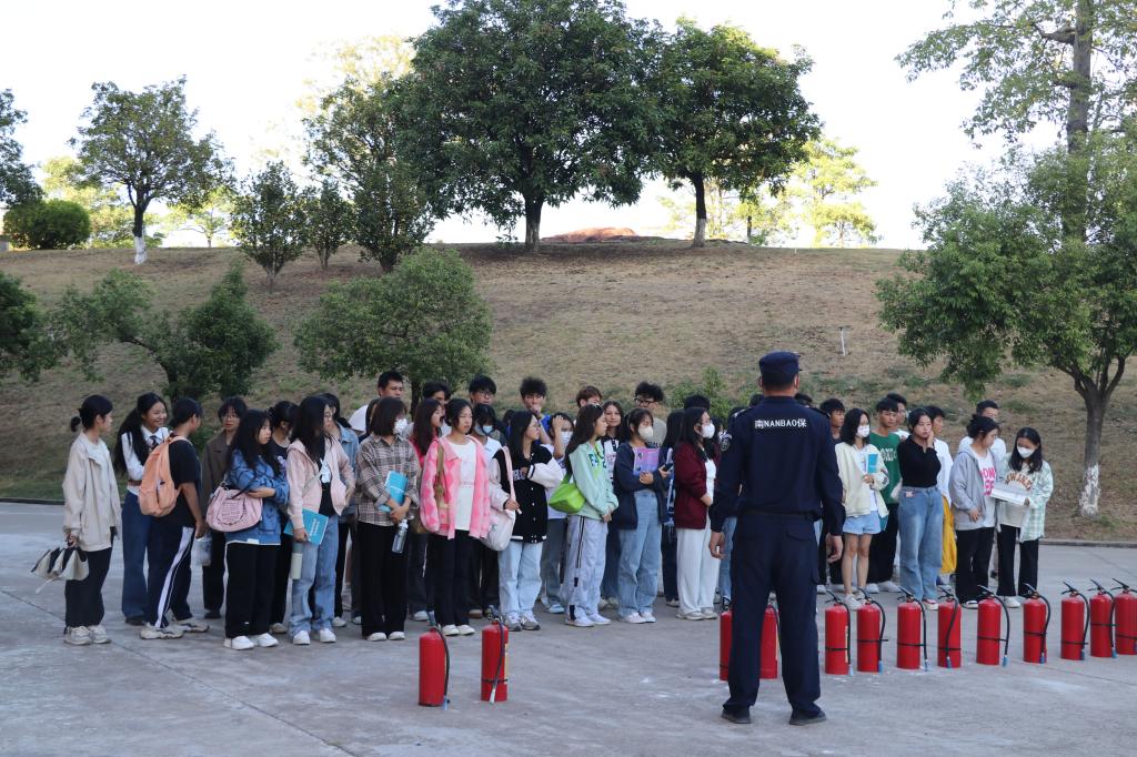 为避免校园消防安全事故发生,提高我院师生的安全防范意识及消防逃生、灭火技能,2022年10月11日15:00时,我院服装与服饰专业组织开展了消防安全知识讲座及消防技能培训。学校保卫处邓伟昌处长、学院王方副院长及服装与服饰设计专业师生参加了此次活动。