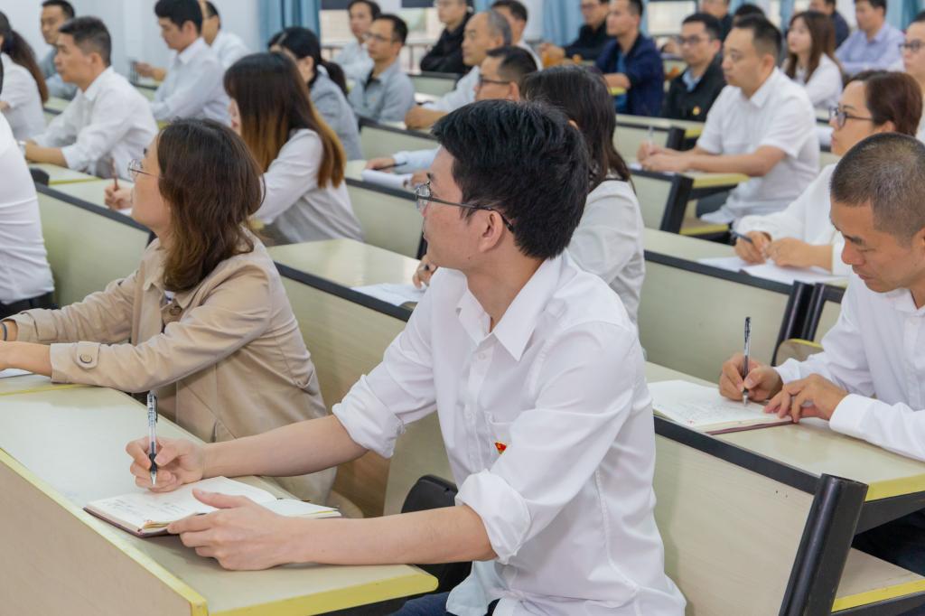 为扎实做好我校党的二十大精神宣讲工作,切实推进党的二十大精神进校园。11月8日下午,机电工程学院在实训楼D312召开学习贯彻党的二十大精神宣讲会。学院党总支书记、院长钟建坤作主题宣讲报告,学院师生党员参加,会议由党总支副书记黄亮主持。
