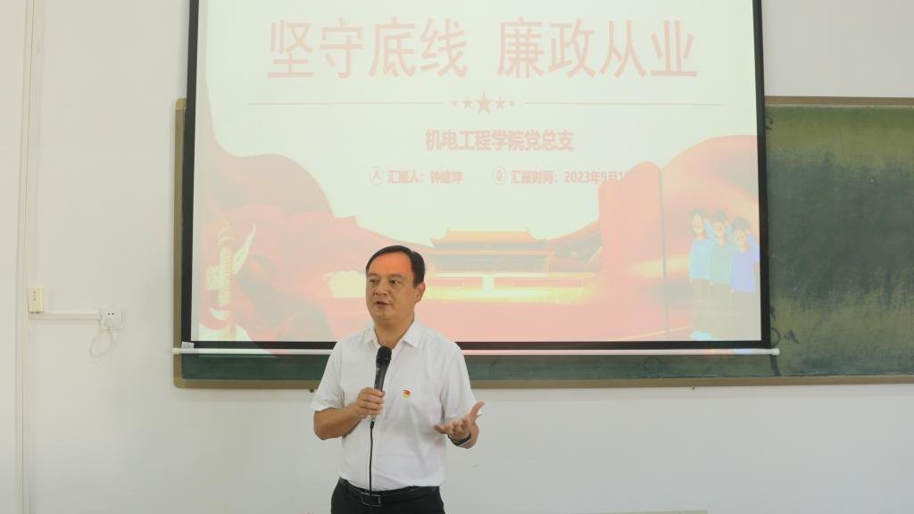 为深入学习贯彻习近平新时代中国特色社会主义思想,深入学习领会习近平总书记在党的二十大和二十届中央纪委二次全会上对全面从严治党作出的战略部署,深入学习贯彻习近平总书记视察广东重要讲话重要指示精神,推动学院全面从严治党向纵深发展,持续加强师德师风建设,落实学校2023年纪律教育学习月活动工作要求,9月19日下午,机电工程学院党总支在实训楼D508举行2023年纪律教育学习月暨师德建设主题教育月活动启动仪式,对纪律教育学习月、师德建设主题教育月工作进行动员部署。学校党委副书记、纪委书记叶国英,学院全体教职工参加活动。活动由党总支副书记黄亮主持。