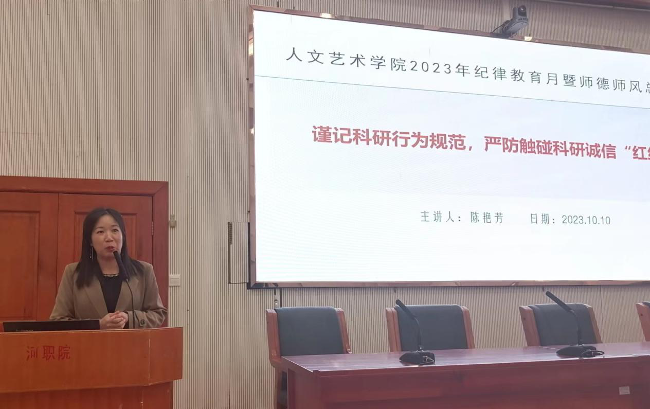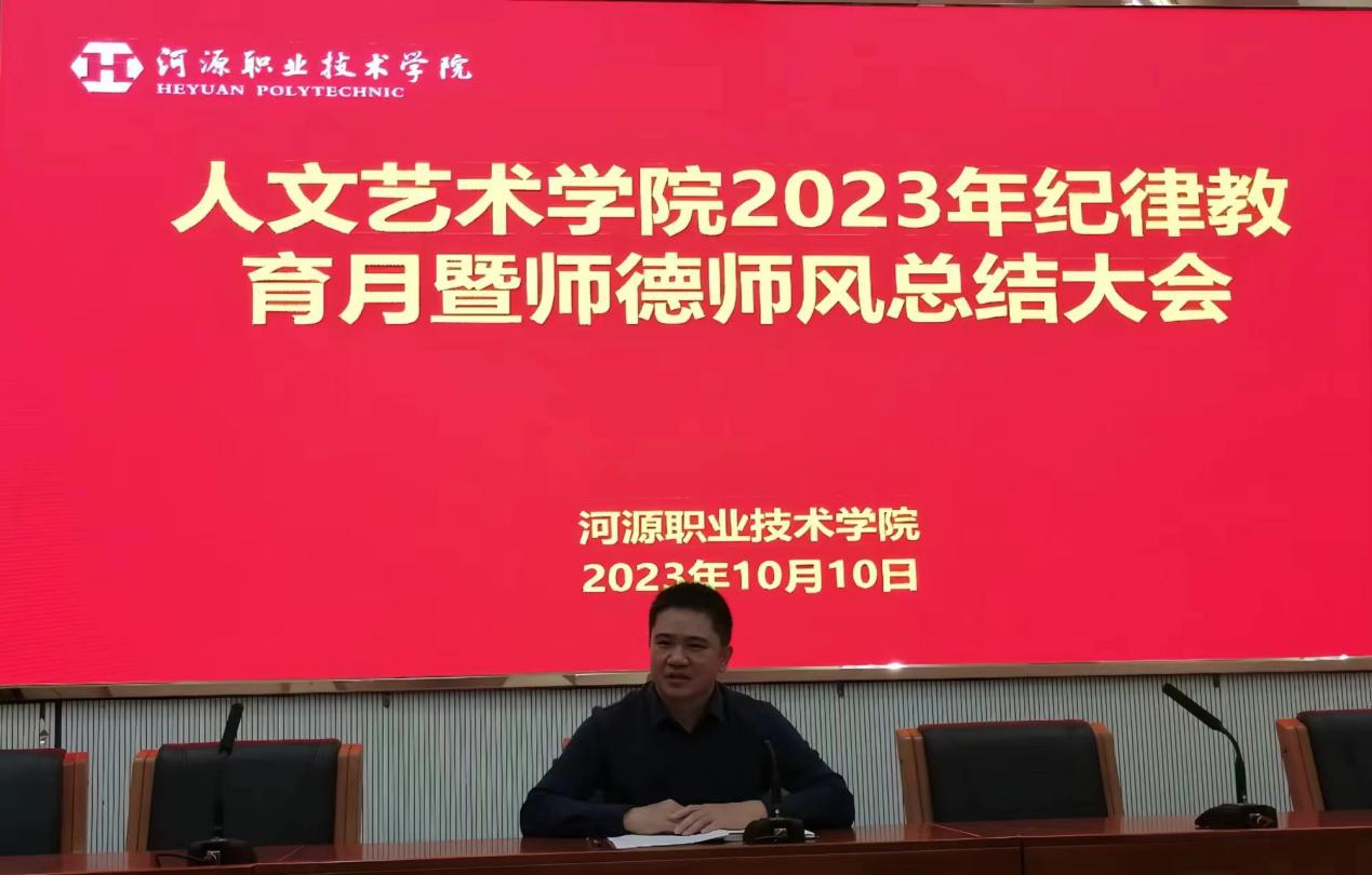10月10日15:00,按照省教工委、市委办有关通知要求和《赢博线上官网(集团)官方网站关于2023年开展纪律教育学习月活动的实施方案》部署要求,人文艺术学院在行政楼C108举行纪律教育学习月暨师德师风主题教育活动总结大会。学校副校长袁光华、人文艺术学院全体教职工参加了此次会议。