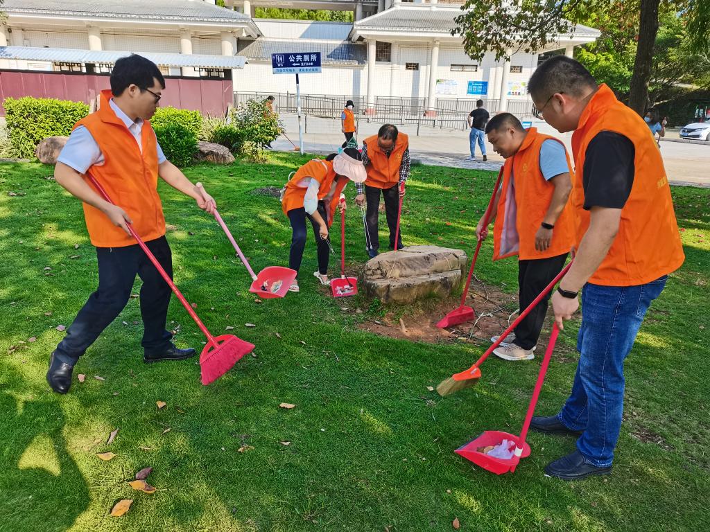 随后,全体教工党员以支部为单位在阳明公园开展志愿服务活动。