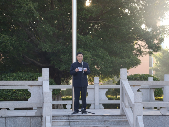 仪式结束后,杜伟祥院长作了讲话,表彰了在第十九届田径运动会上获得佳绩的同学们,在全体运动员的拼搏下,老隆师范学院学生组勇夺团体第一名。学生代表23级学前教育1班的李紫筠在国旗下作“汇集每束光芒,点亮儿童未来”主题演讲。她倡导同学们加入保护儿童的行列,点亮儿童未来。