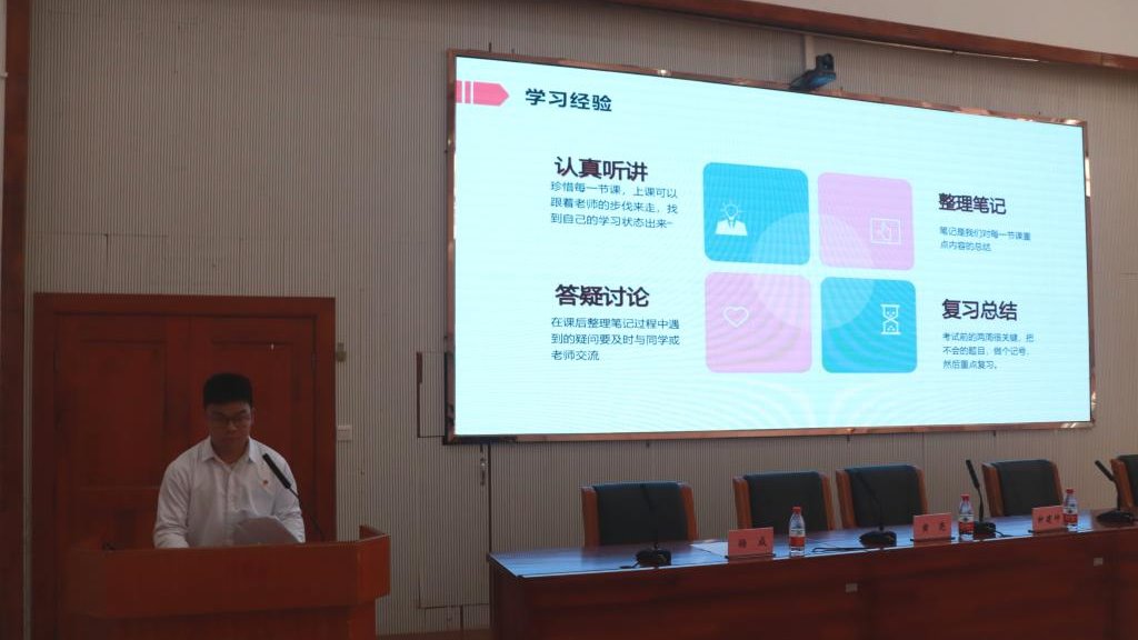 国家奖学金获奖学生代表张周豪在经验分享时表示,作为一名大学生,应树立明确的目标,积极付诸行动,认真学习理论知识,积极参加各种技能竞赛,将理论知识应用到实际中。