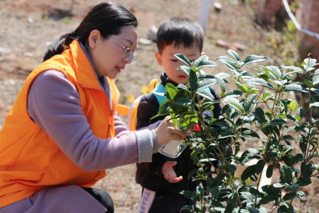首先,园林技术专业的老师利用自身的专业知识,为来自河源市爱乐祺托育早教中心的孩子们上了一堂专业的科学植树科普必修课。通过教师的专业示范和讲解,孩子们了解了我国“植树节”的由来及树木的种植、生长知识等,在孩子们幼小的心灵中种下了一颗“爱绿、植绿、护绿、兴绿”的种子。