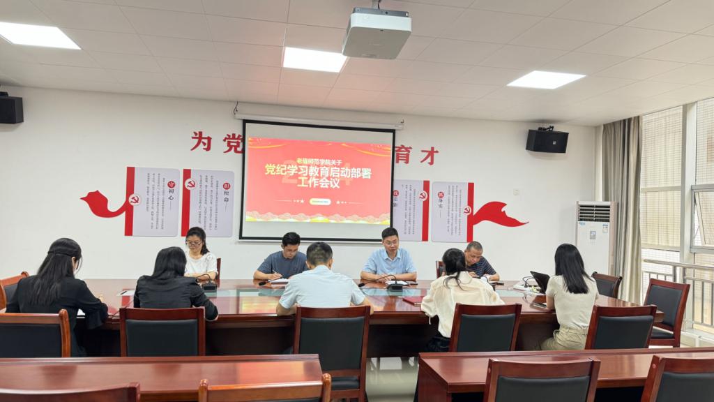 4月18日,老隆师范学院党总支在艺术楼A201召开了党纪学习教育启动部署工作会议,各支部委员参加了会议。