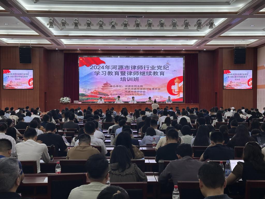 5月25日,由河源市司法局、中共河源市律师行业委员会联合河源市律师协会主办,河职院继续教育学院承办的2024年河源市律师行业党纪学习教育暨律师继续教育培训班在我校学术交流中心开班。市司法局党组成员、副局长、市律师行业党委书记练斌以及其他协会领导、全市执业律师和实习人员共600余人通过线上线下培训相结合的方式参加了为期一天的培训。