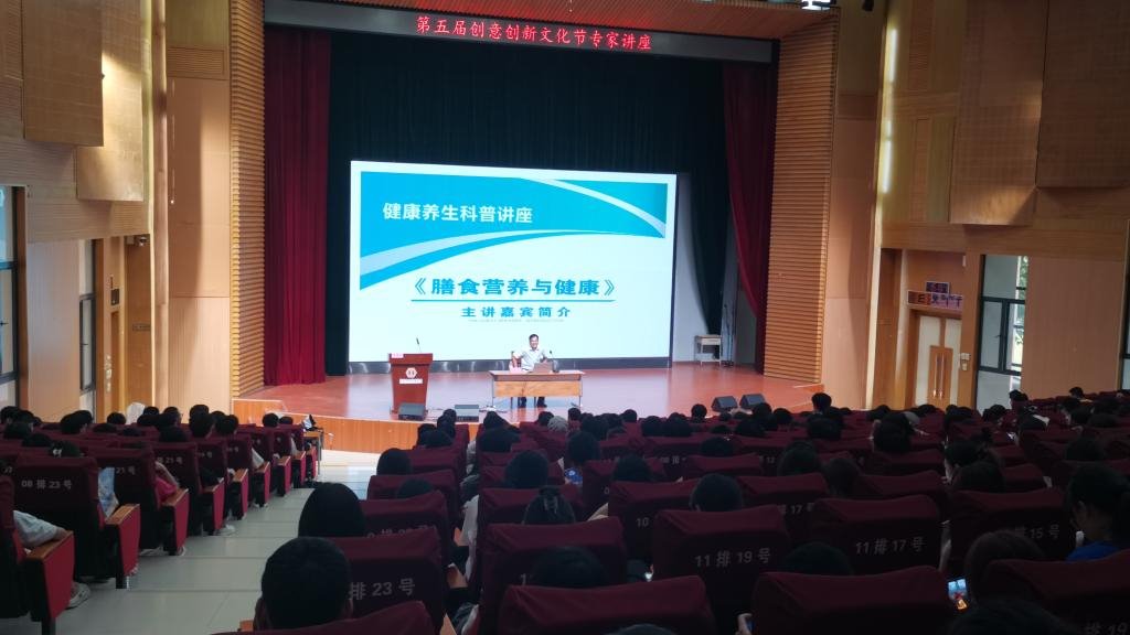 9月13日下午,由机电工程学院承办的赢博线上官网(集团)官方网站第五届创意创新科技文化节开展专家讲座活动,邀请校外龙日荣教授为广大师生做“膳食营养与健康”主题讲座。活动由钟建坤院长主持,近四百名师生聆听了讲座。