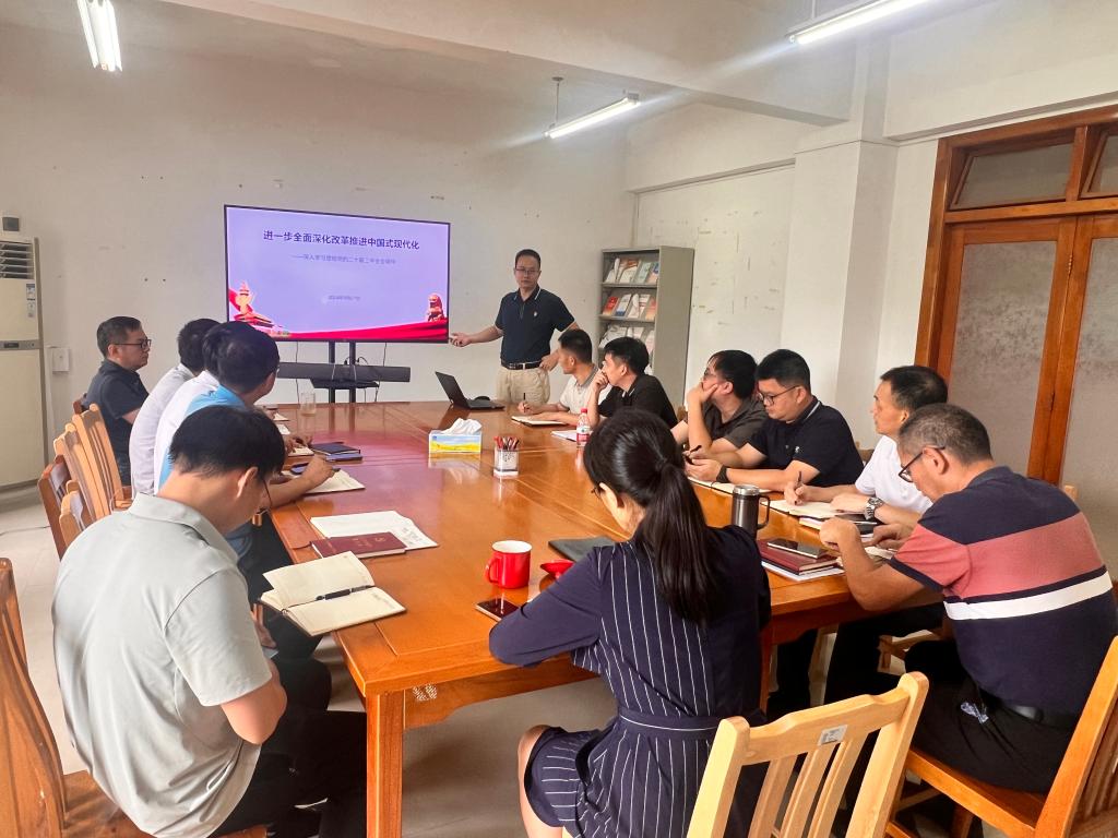 会上,杨文同志以《进一步全面深化改革推进中国式现代化》为题,紧紧围绕习近平总书记在党的二十届三中全会上的重要讲话和全会《决定》,从深刻认识全会的主题和重大意义、准确理解进一步全面深化改革的总目标和重大原则、深刻把握进一步全面深化改革的重大举措以及坚决贯彻落实党的二十届三中全会精神等四个方面,结合信息中心工作实际,对党的二十届三中全会精神进行了全面、深入、系统的宣讲和阐释。