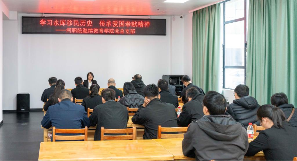 参观学习后,党总支书记李文萍同志以《学习水库移民历史,传承爱国奉献精神》为题给党员同志上了一堂生动的党课。她希望党员同志坚定理想信念、牢记初心使命,传承爱国奉献精神,以更高的热情和责任感在各自工作岗位上发光发热,为学校继续教育高质量发展作出更大的贡献,为实现中华民族伟大复兴的中国梦贡献自己应有的力量。