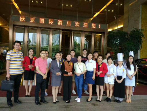 9月7日至9月9日三天,辗转东莞、广州和惠州三地,赶赴东莞欧亚酒店、东莞嘉华酒店、广州长隆酒店、惠州康帝酒店及惠州皇冠假日酒店等五家校外实习基地,工商管理学院校企办办公室张颖主任带领酒店管理及烹饪专业教师,检查学生实习情况,看望实习学生。