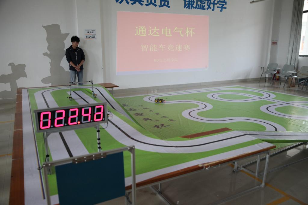 近日,第二届创意创新科技文化节之“通达电气杯”智能车竞速赛顺利举行。本次大赛吸引了来自机电学院、电信学院等共22支参赛队的参加。经过激烈的争夺,“龙泳明战队”以36.77秒的成绩夺得冠军。