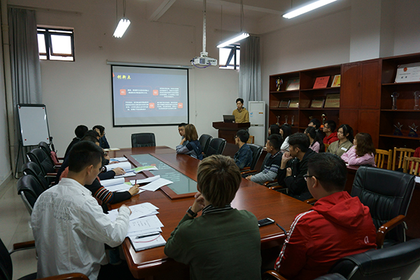 “挑战杯”致力于创新人才的培养,其宗旨在于崇尚科学、刻苦钻研、锐意创新、迎接挑战。本次参赛共13组人员,作品类别分四大类。各组成员依次上台讲解其作品的内容、特点并总结。评委老师最后经过评分、评选,选出7份作品,代表电信学院参加校级“挑战杯”比赛 。