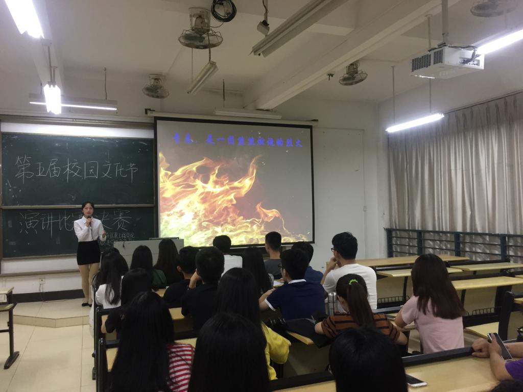 2017年5月19日,电信学院学生会学习部在教学楼C202开展以“展青春风采,建魅力校园”为主题的演讲比赛总决赛。出席人员有评委团、团总支学生会主席团、学习部、各部门委员代表,专业团支部学习部成员、15、16级班委学习委员、学生代表、比赛选手。
