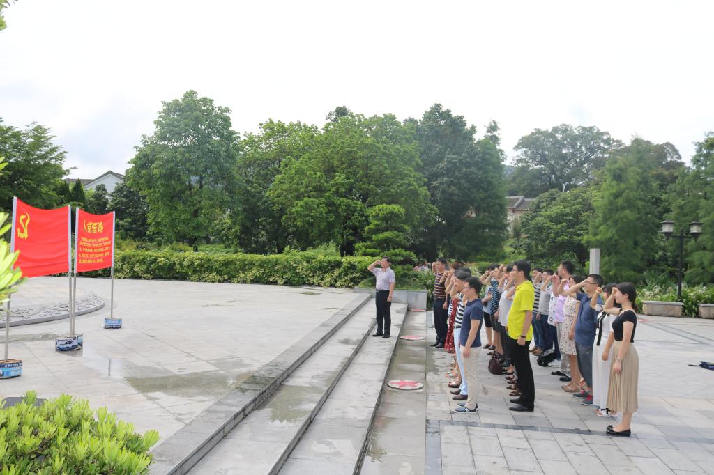 教师党员先后参观了叶挺将军纪念馆、纪念广场、叶挺故居等纪念建筑。全体党员在叶挺纪念广场叶挺铜像下,面对党旗,重温入党誓词,向党庄严而郑重承诺,牢记誓言,不忘初心。在叶挺纪念馆,大家通过观看历史图片、实物资料、聆听讲解,详细了解了叶挺将军光辉一生。叶挺将军从出身农家,到赴法国深造,到从戎救国,到参加南昌、广州起义;从领导抗敌,到后来的铁窗铮骨,叶挺将军坎坷而又辉煌的一生令在场的党员惋惜而又赞叹,深受感染。