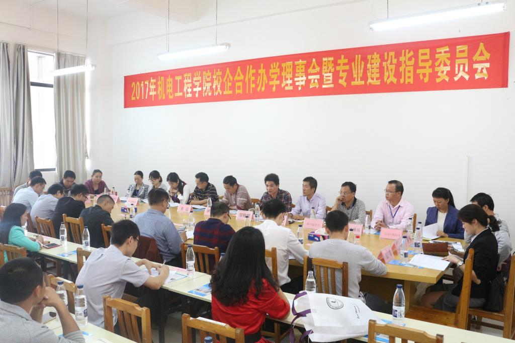 11月9日下午,机电学院在实训楼学院会议室成功举行2017年校企合作办学理事会暨专业建设指导委员会会议。学院班子成员、各专业主任、专业教师代表、校企合作办学理事会成员及参加招聘会企业代表出席了此次会议。