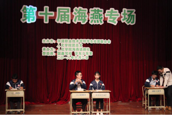 6月2日晚上,人文学院海燕话剧社在图书馆学术报告厅顺利举办以“你好!海燕”为主题的第十届专场晚会。出席本次晚会的嘉宾有校团委书记陈晓峰,海燕话剧社指导老师郑尔君及人文学院办公室主任刘少燕老师等。