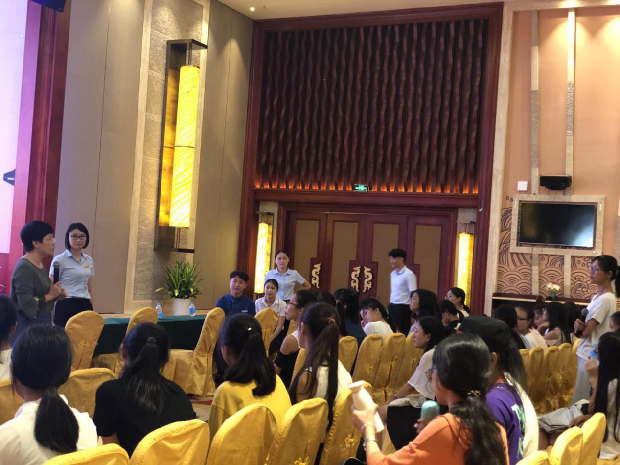 酒店管理专业曾惠华主任进行专业介绍,黄蔚红老师给予新生寄语;客天下综管部人事经理梁晴苑介绍企业蓝图及现代学徒制班招生流程; 2017届/2018届河职院酒管毕业生、客天下各部门师兄师姐经验分享。