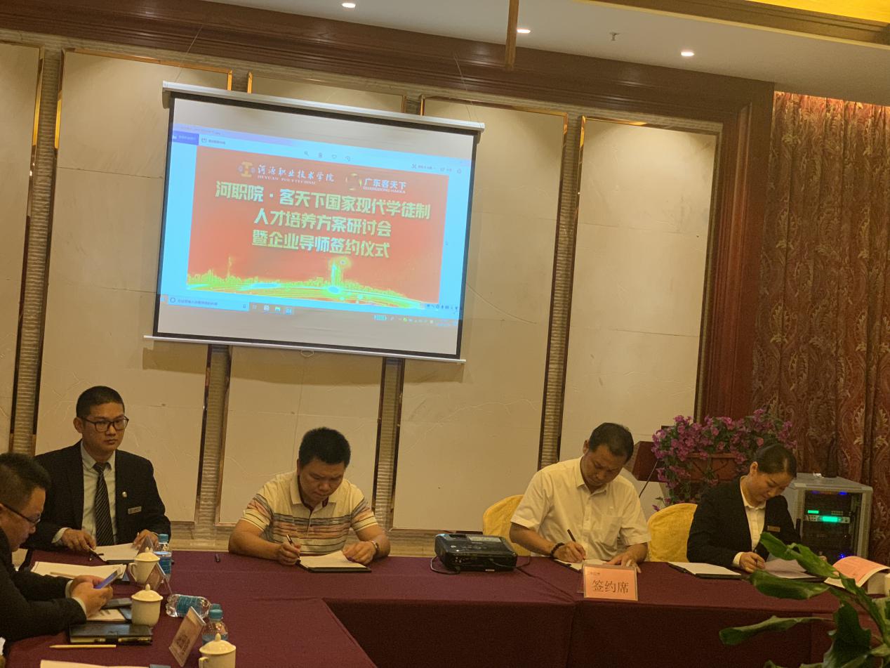 为进一步完善国家现代学徒制人才培养方案,10月26日下午,工商管理学院在河源客天下召开现代学徒制人才培养方案研讨会并举行企业导师签约仪式。客天下总经办主任兼综管部总监曾金杰、客天下文旅公司总经理李国锋、客天下学徒制导师,赢博线上官网(集团)官方网站教务处教学科科长钟燕瑾、质量督导处督导专员张晓燕副教授、工商管理学院副院长张颖、酒店专业老师出席研讨会。会议由梁晴苑、曾惠华主持。