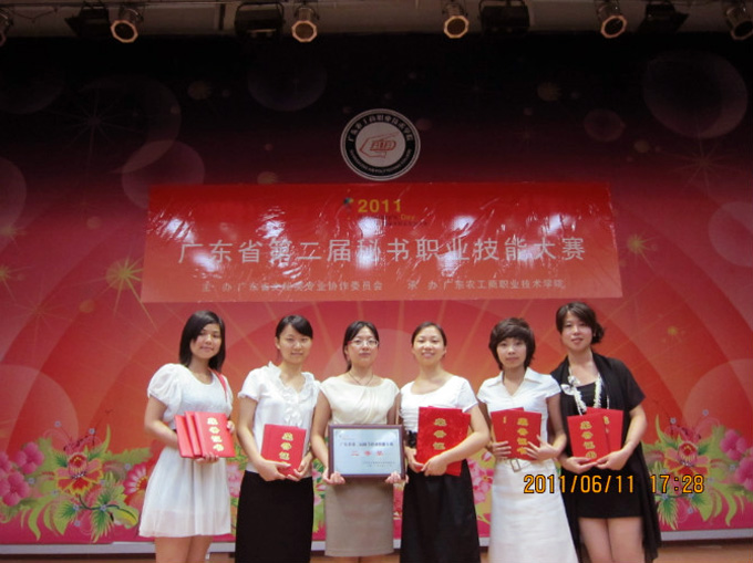 6月10日至11日,广东省第二届秘书职业技能大赛在广东农工商职业技术学院举行,我校文秘专业派出的参赛队伍荣获团体二等奖,选手均获得了个人全能及单项二等奖。