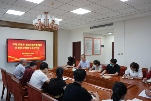 8月20日,继续教育学院召开习近平总书记在西藏考察期间重要讲话精神专题学习会,学院党总支副书记彭仲文同志主持,学院全体党员参加了学习会。